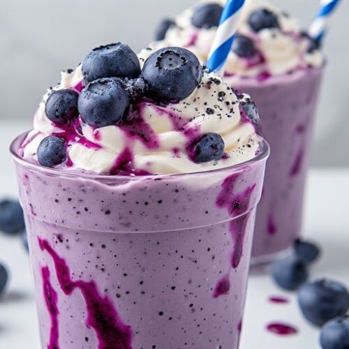 This homemade Blueberry Frappuccino blends a rich vanilla milk base with fresh blueberry sauce for a creamy, café-style frozen drink. Topped with whipped cream and optional cookie crumbs, it’s a refreshing and indulgent treat perfect for summer.