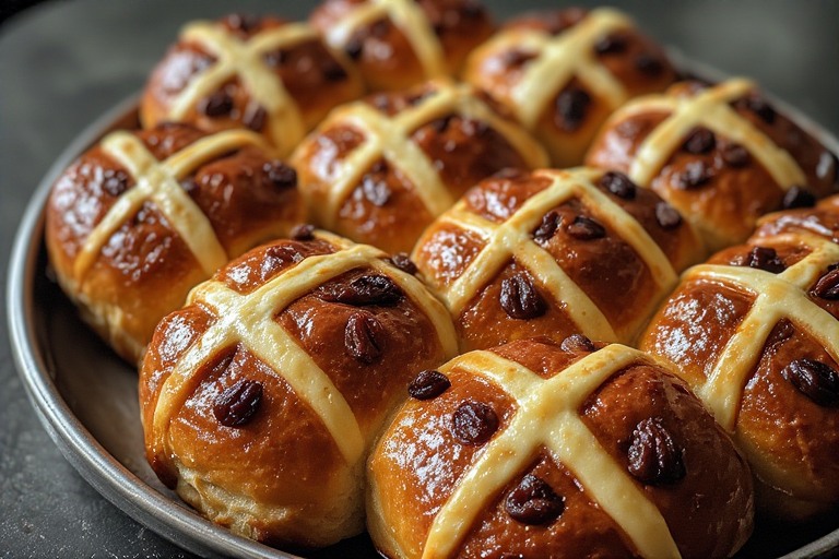 Hot cross buns are one of the most traditional Easter treats. Soft, lightly sweet rolls filled with warm spices and